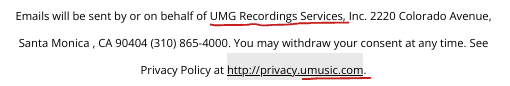 And in the website’s privacy policy, which is generic Universal Music privacy policy that they use for all of their stores.